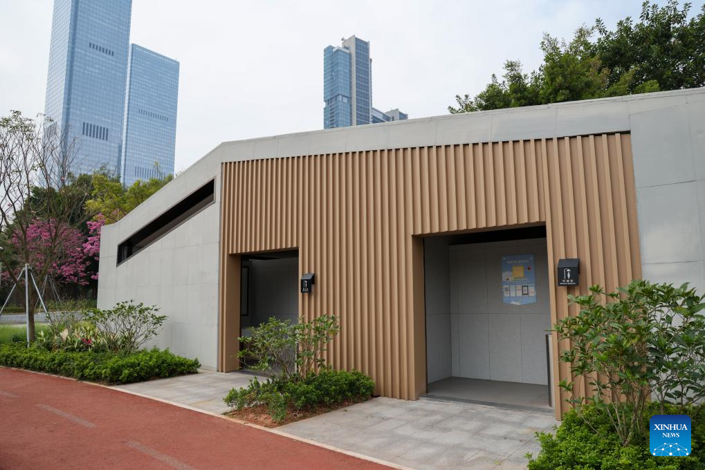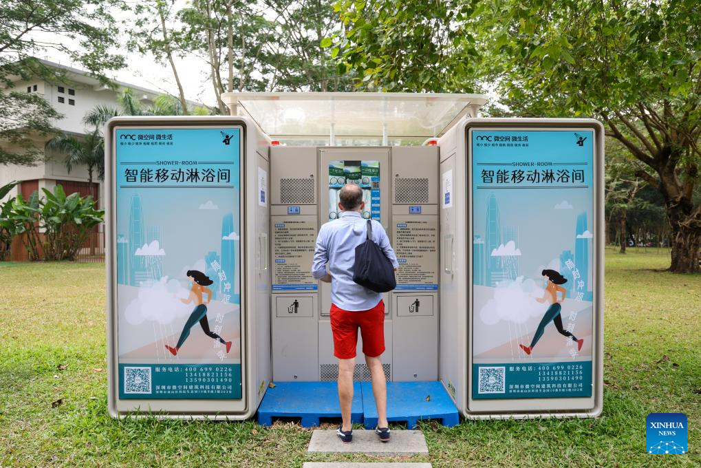 This photo taken on Dec. 27, 2024 shows a smart shower-room at a park in Shenzhen, south China's Guangdong Province. In various parks across Shenzhen, advanced artificial intelligence applications are ubiquitous, making technologies a part of daily life for the public. (Xinhua/Liang Xu)