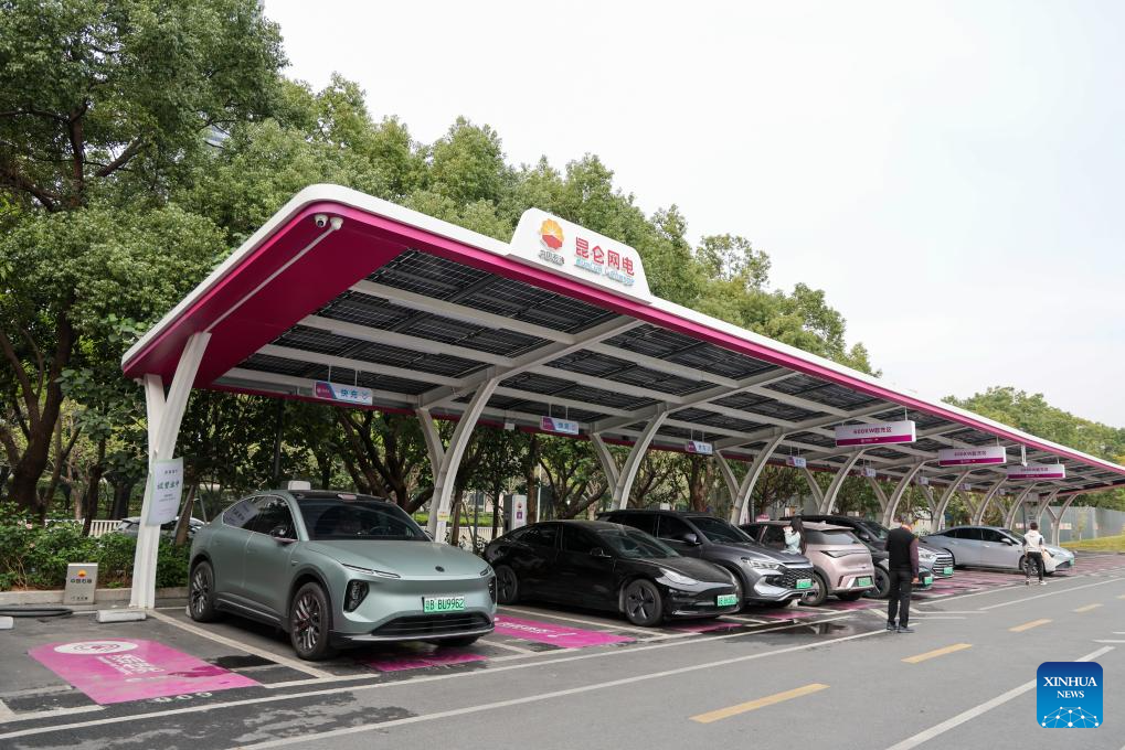This photo taken on Dec. 27, 2024 shows smart charging station at a park in Shenzhen, south China's Guangdong Province. In various parks across Shenzhen, advanced artificial intelligence applications are ubiquitous, making technologies a part of daily life for the public. (Xinhua/Liang Xu)
