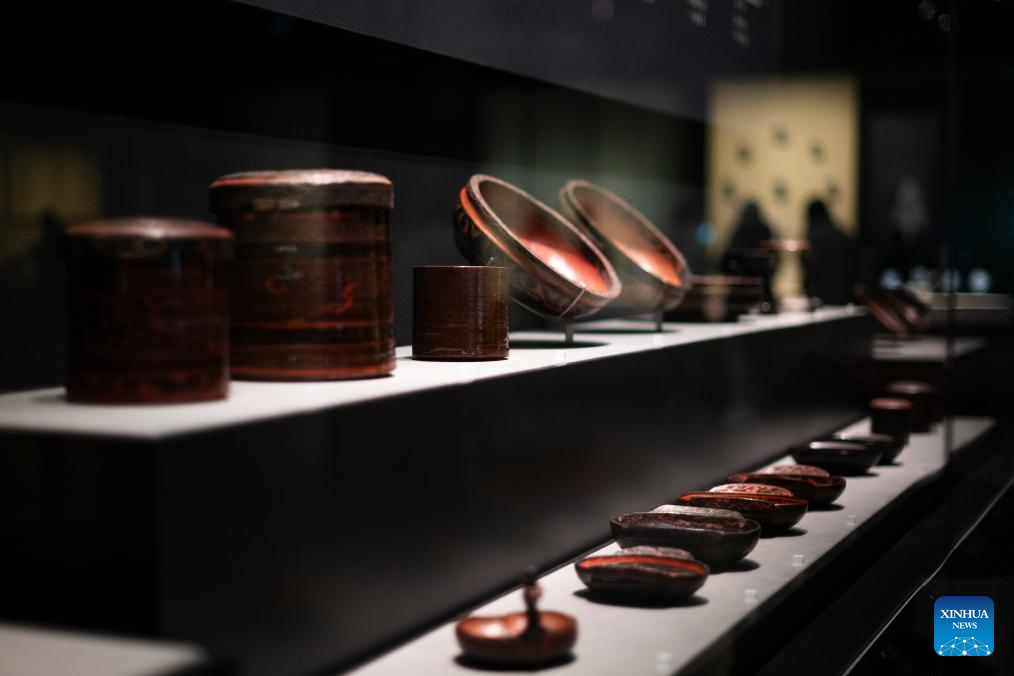 This photo taken on Dec. 31, 2024 shows lacquerware on display at the exhibition "A Panorama of Hubei" in Wuhan, central China's Hubei Province. The exhibition opened here on Tuesday, showcasing the history and culture of Hubei in both ancient and modern times. (Xinhua/Wu Zhizun)