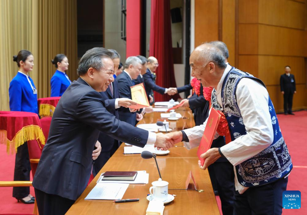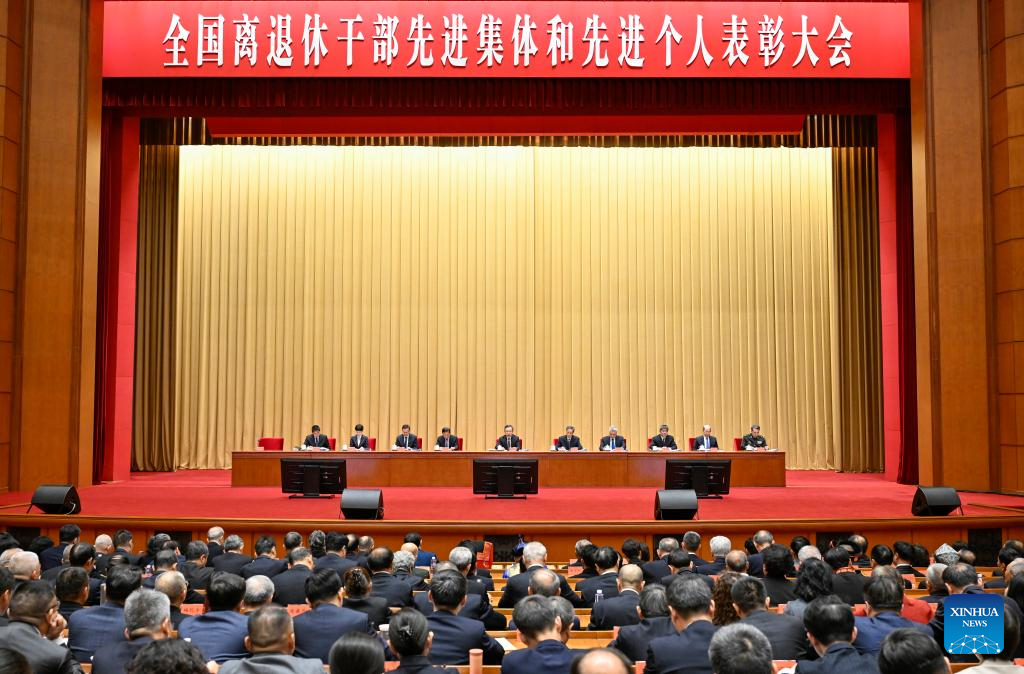 Li Ganjie, a member of the Political Bureau of the Communist Party of China (CPC) Central Committee and head of the CPC Central Committee's Organization Department, attends a ceremony to honor model retired officials and groups on Dec. 30, 2024. Li also delivered a speech at the event. (Xinhua/Ding Lin)