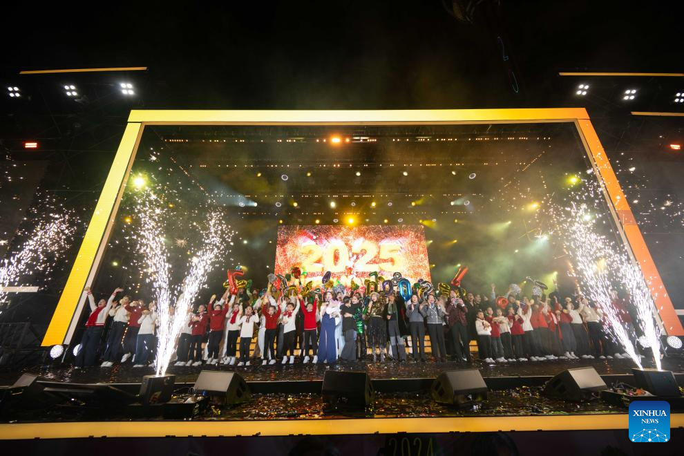 A New Year countdown concert is staged in Macao, south China, Jan. 1, 2025. (Xinhua/Cheong Kam Ka)