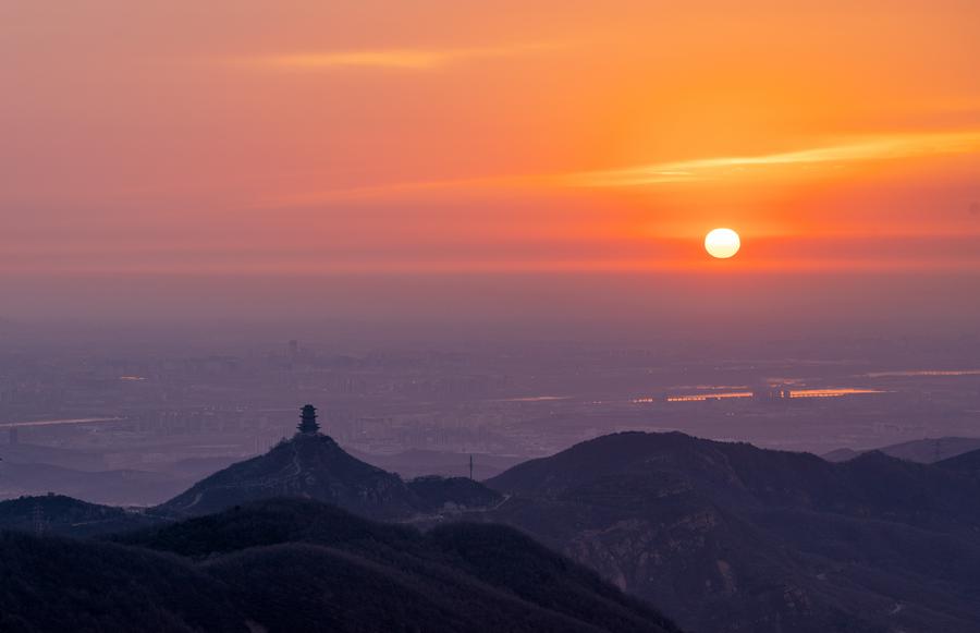 This photo shows the sunrise scenery at Tanzhe Temple in Beijing, capital of China, Jan. 1, 2025. (Xinhua/Li He)