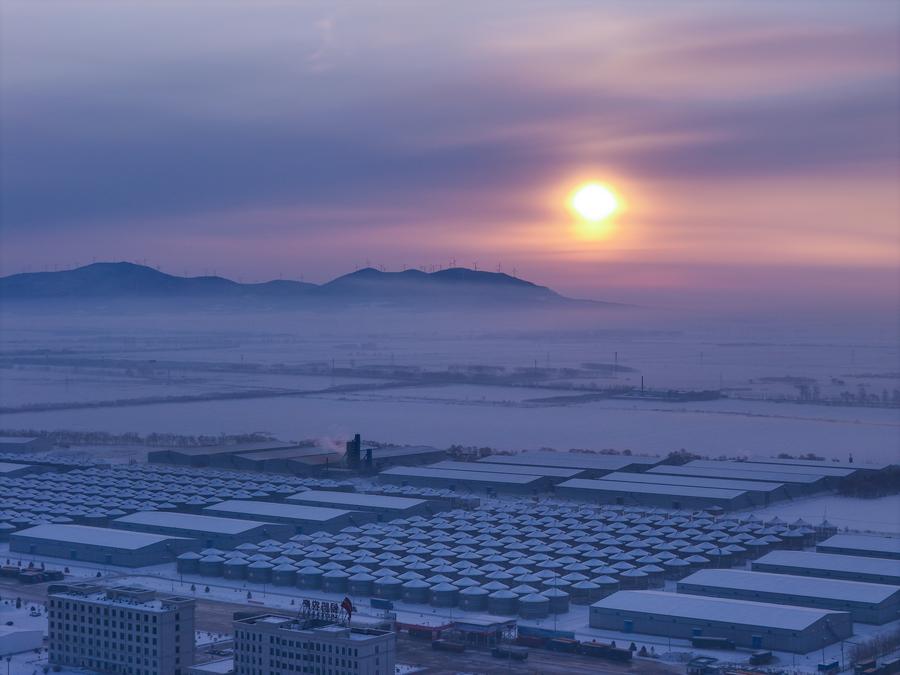 This photo taken on Jan. 1, 2025 shows the sunrise scenery in Fujin City, northeast China's Heilongjiang Province. (Photo by Qu Yubao/Xinhua)