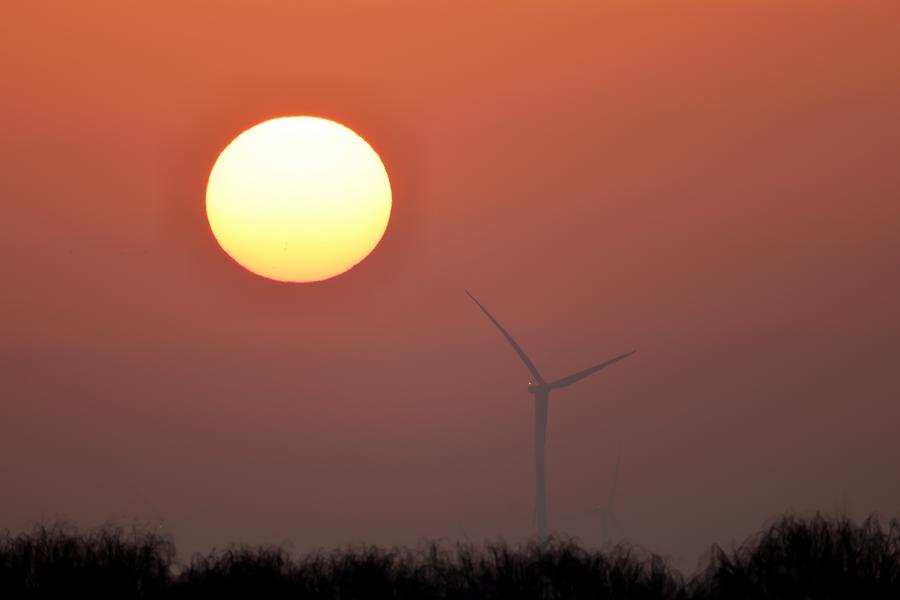 This photo shows the sunrise scenery in Hongze District of Huai'an City, east China's Jiangsu Province, Jan. 1, 2025. (Photo by Yin Chao/Xinhua)