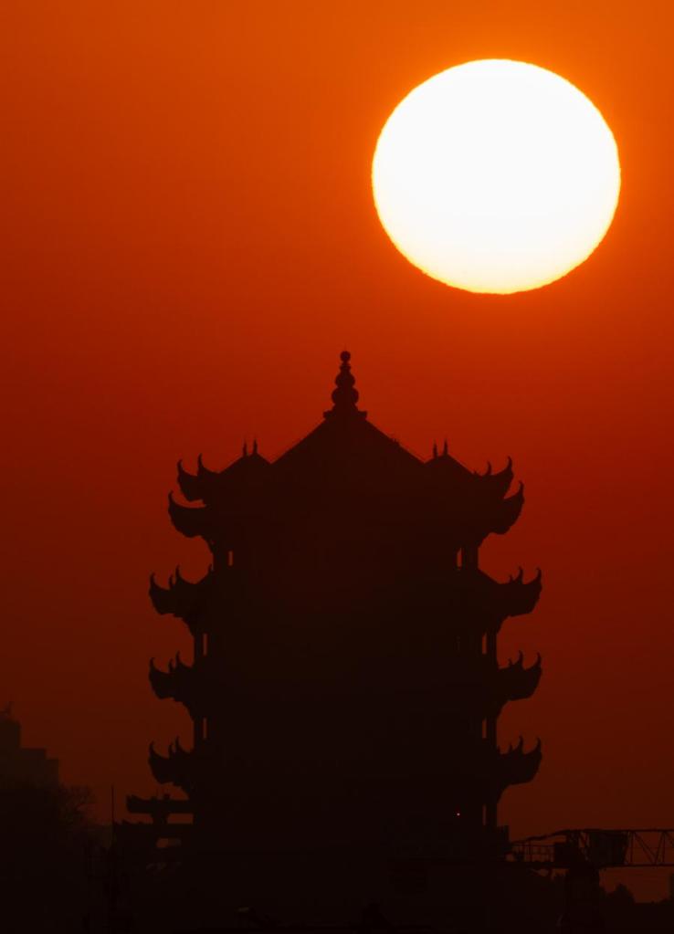 This photo shows the sunrise scenery at the Yellow Crane Tower in Wuhan, central China's Hubei Province, Jan. 1, 2025. (Xinhua/Hu Jingwen)