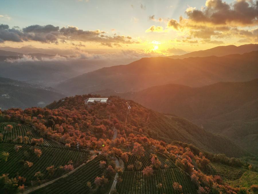 An aerial drone photo shows the sunrise scenery over the Wuliang Mountain in Nanjian County, southwest China's Yunnan Province, Jan. 1, 2025. (Photo by Shi Zhihong/Xinhua)