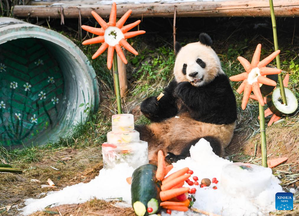 Since their arrival at the park last year, the four giant pandas have successfully adapted to their new surroundings under the attentive care of their keepers. Their relaxed lifestyle and endearing appearance have brought much joy to visitors. (Xinhua/Wang Quanchao)