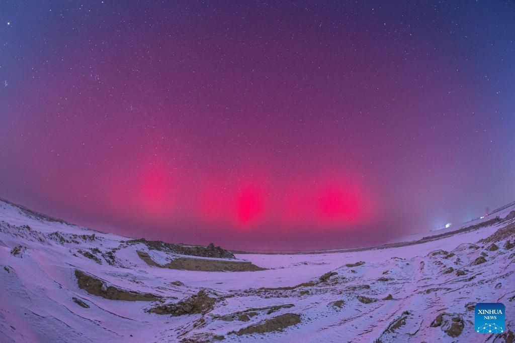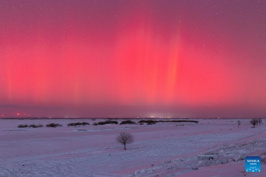 This photo taken on Jan. 2, 2025 shows the aurora seen in Qiqihar City, northeast China's Heilongjiang Province. (Photo by Wang Yonggang/Xinhua)