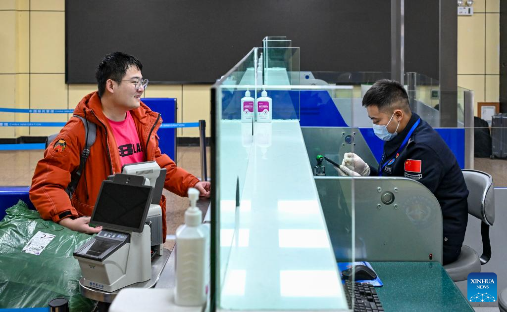 A passenger for Pakistan has his travel documents checked at the Khunjerab Pass in Taxkorgan Tajik Autonomous County, northwest China's Xinjiang Uygur Autonomous Region, Jan. 2, 2025.