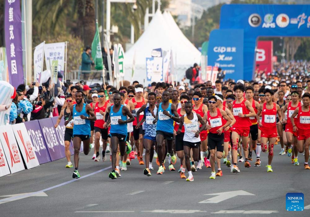 Participants start the Xiamen Marathon 2024 in Xiamen, southeast China's Fujian Province, Jan. 7, 2024. (Xinhua/Wei Peiquan)