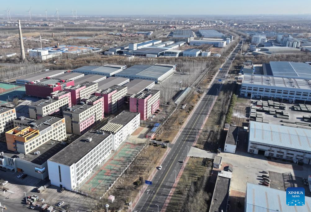 This photo taken on Jan. 3, 2025 shows factories of carpet manufacturers in Cuihuangkou Town, Tianjin, north China, on Jan. 3, 2025. Carpet enterprises are busy with production for orders before the upcoming Spring Festival holidays in Cuihuangkou Town, which is known as the "carpet town" and has more than 100 years of carpet production history. At present, there are more than 1,200 carpet enterprises in the town, with an annual carpet production of hundreds of millions of pieces, and 25,000 local employees, accounting for about 50 percent of the town's population. (Xinhua/Li Ran)