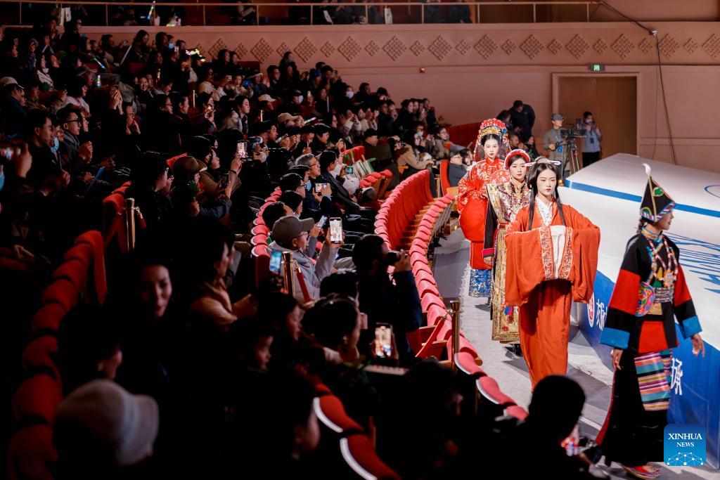 This photo taken on Jan. 3, 2025 shows a costume show during the opening ceremony of a clothing culture week in Lhasa, southwest China's Xizang Autonomous Region. The clothing culture week, first of its kind in Xizang Autonomous Region, kicked off here on Friday, with the aim of presenting the charm of Tibetan clothing culture and promoting the development of local cultural tourism industry. (Xinhua)