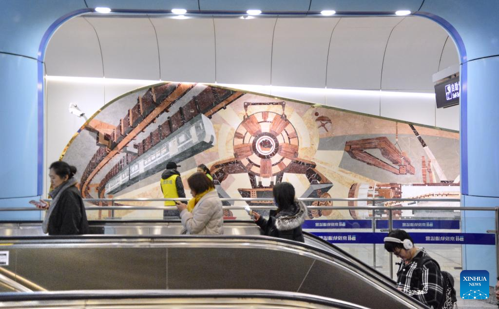 This photo taken on Jan. 4, 2025 shows murals at Niujie Station on Beijing Subway Line 19 in Beijing, capital of China. (Xinhua/Li Xin)