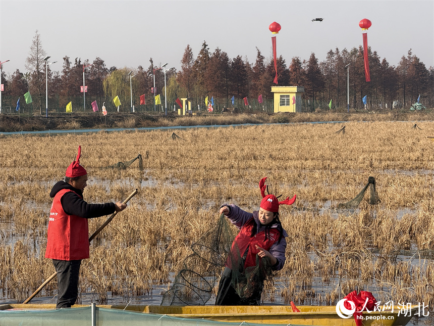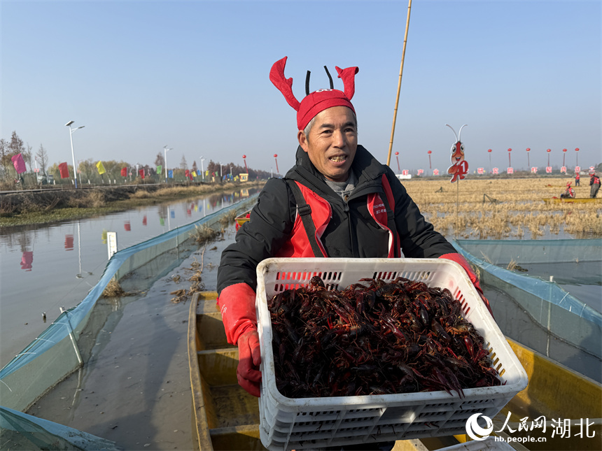 At a farming base in Houhu Management Zone, Qianjiang city of Hubei, farmers were busy bringing in their winter catch. "Look at this one! It's big, with just the right shell texture, firm and plump meat—it's bound to be delicious," said farmer Huang Liqiang as he showed a freshly caught crayfish. "Now we can sell crayfish even in winter," Huang said with a smile.