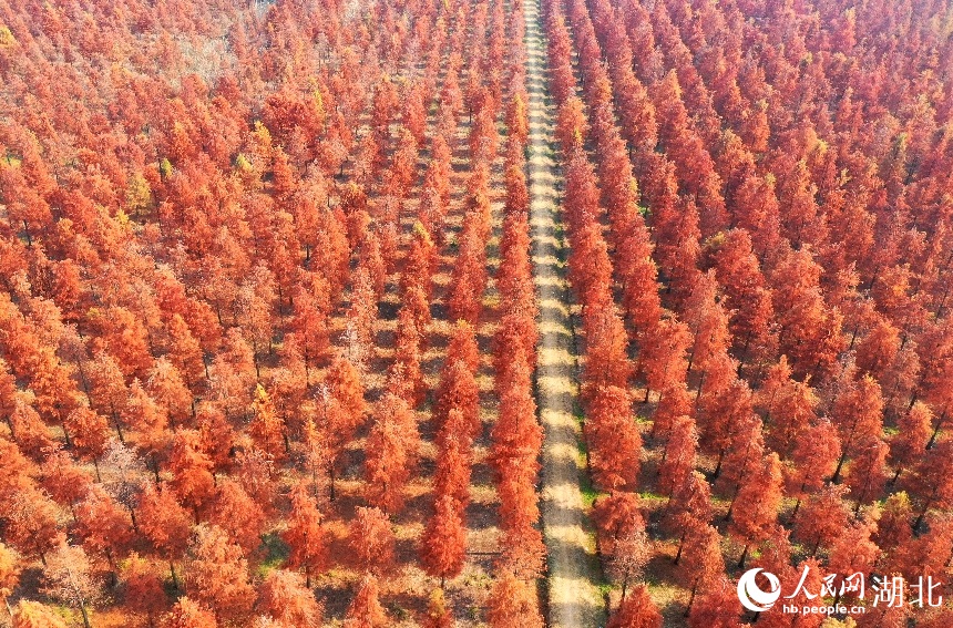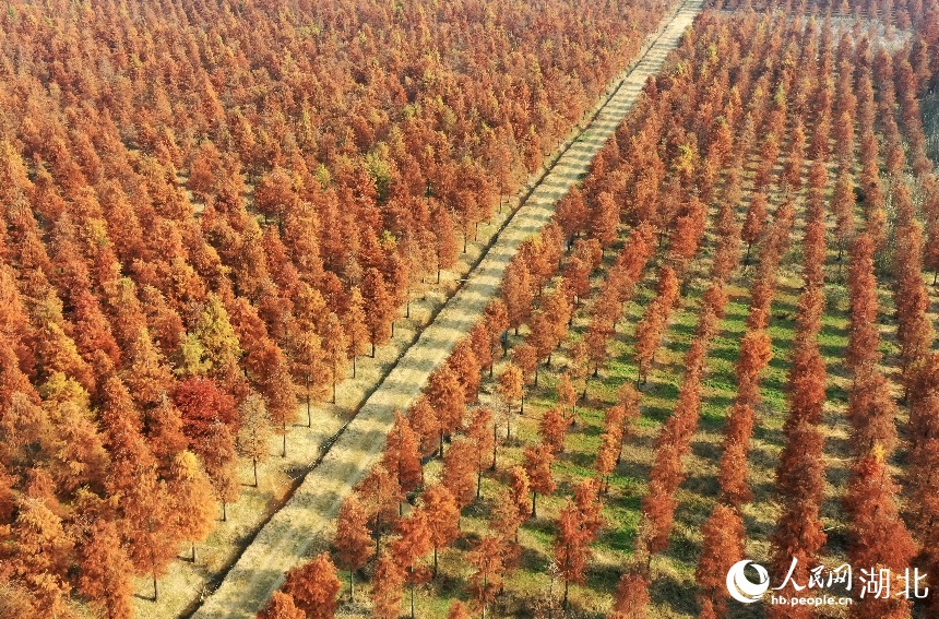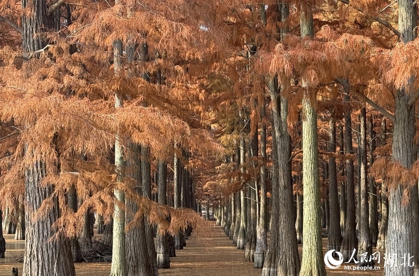 Recently, the cypress forests at the Zhangdu Lake Wetland Nature Reserve, located in Xinzhou district of Wuhan, capital of central China's Hubei Province, have entered a vibrant and colorful season, offering breathtaking views to visitors.