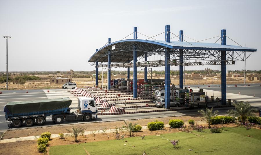 This photo taken on May 13, 2023 shows a toll station of Ila-Touba highway near Thies, Senegal. (Xinhua/Li Yahui)