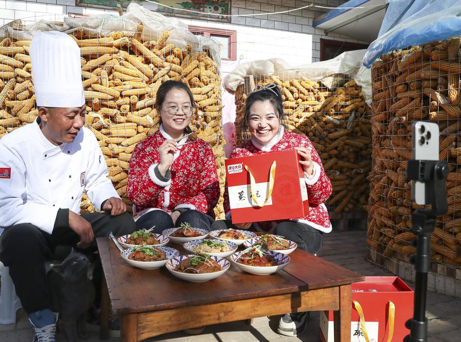 QINGYANG, Jan. 6 (Xinhua) -- As the Spring Festival approaches, vloggers and live streamers living here on the Loess Plateau have been actively promoting local specialties, including grain products, organic fruits and vegetables, and local farmhouse snacks. Their channels on social media platforms are characterized by vibrant rural-style atmosphere, contributing to the popular sales of various traditional new year goods.