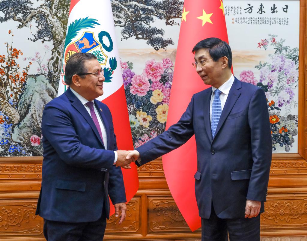 Wang, chairman of the Chinese People's Political Consultative Conference (CPPCC) National Committee, said China is willing to make joint efforts with Peru to push for more achievements in China-Peru relations and bring more benefits to the two peoples, and the CPPCC is ready to strengthen exchanges and cooperation with Peru to make contributions to promoting the joint advance of the two countries on the road of national modernization.