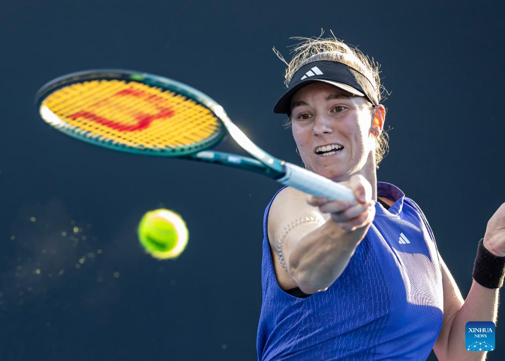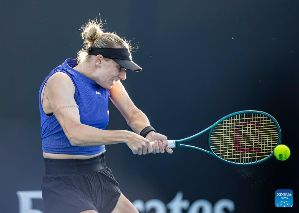 Anouk Koevermans hits a return during the women's singles qualifying round 1 match between Gao Xinyu of China and Anouk Koevermans of the Netherlands at Australian Open tennis tournament in Melbourne, Australia, Jan. 7, 2025. (Photo by Chu Chen/Xinhua)