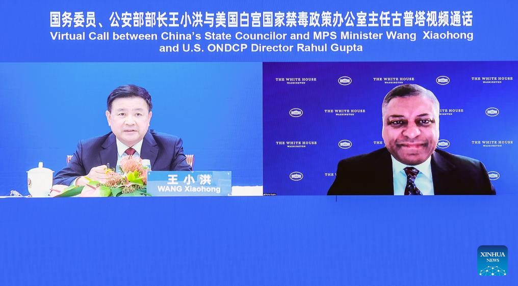 BEIJING, Jan. 7 (Xinhua) -- Chinese State Councilor and Director of the China National Narcotic Control Committee Wang Xiaohong spoke with Rahul Gupta, director of the White House Office of National Drug Control Policy, via video link on Tuesday.