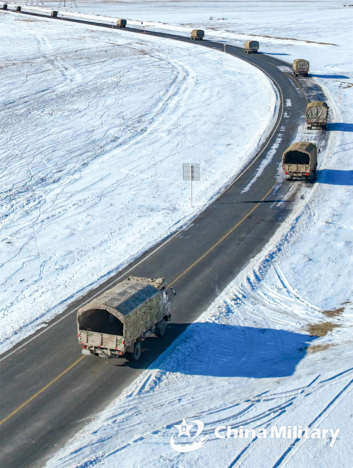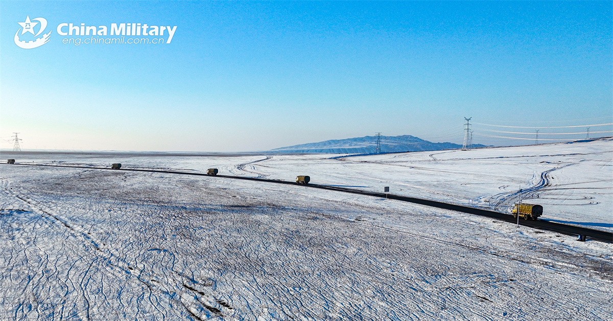Military trucks attached to a unit under the Chinese PLA Xinjiang Military Command move towards the designated area during a driving training exercise on November 27, 2024. (eng.chinamil.com.cn/Photo by Li Feng)