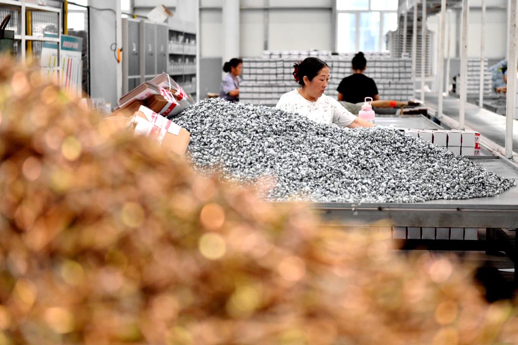 Workers work at a fastener production workshop of a company in Yongnian district, Handan city, north China's Hebei Province, on Aug. 16, 2024. (Xinhua/Wang Xiao)