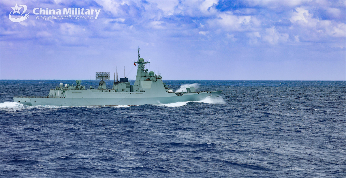 Type 052D guided-missile destroyer Lishui (Hull 157) attached to a flotilla under the Chinese PLA Navy maneuvers to the designated training area on November 11, 2024. (eng.chinamil.com.cn/Photo by Wei Chenping)