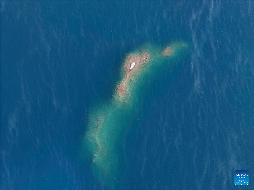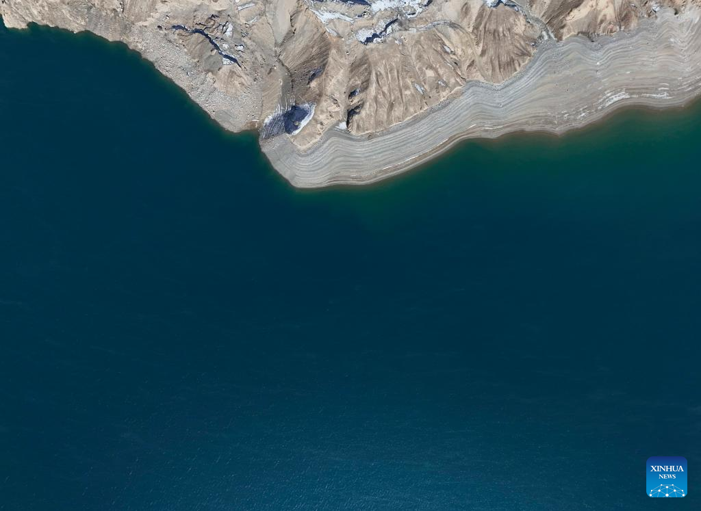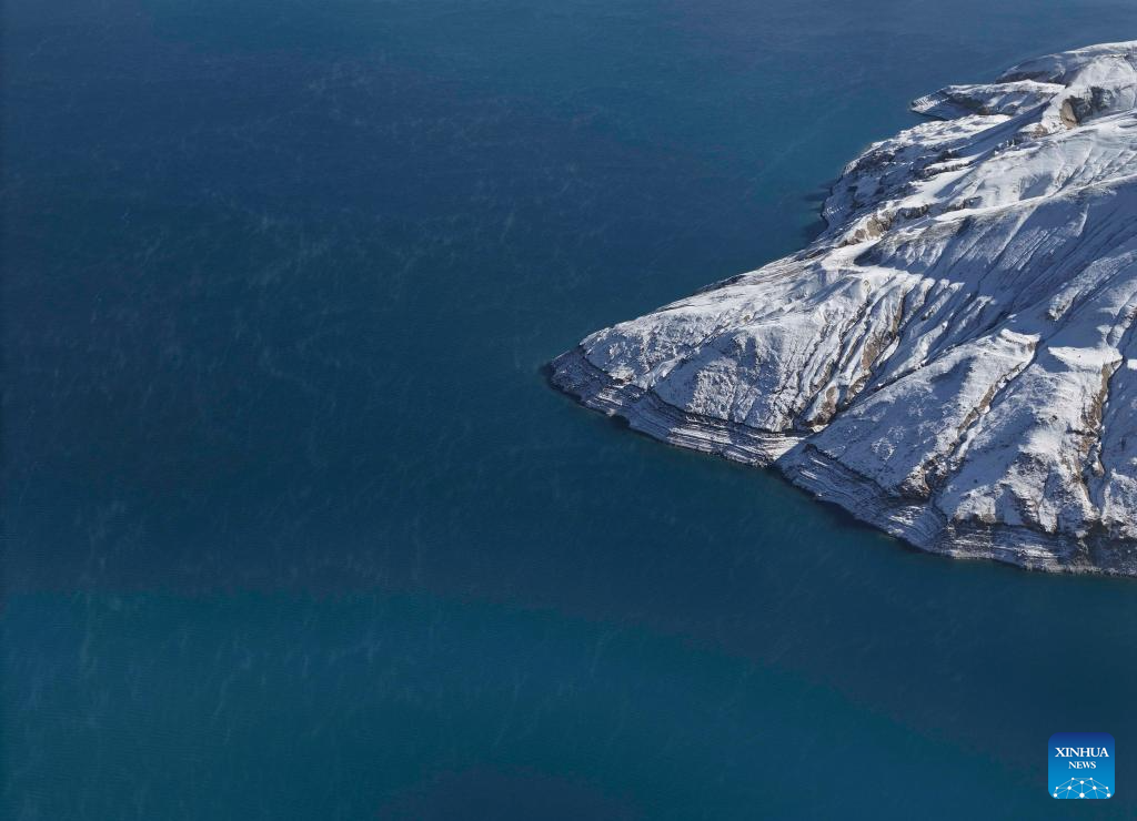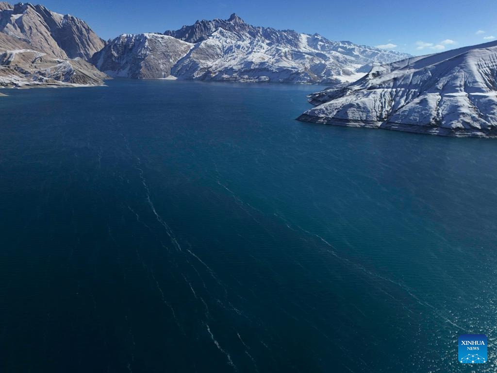 An aerial drone photo taken on Jan. 8, 2025 shows a lake in Taxkorgan Tajik Autonomous County, northwest China's Xinjiang Uygur Autonomous Region. (Xinhua/Hu Huhu)