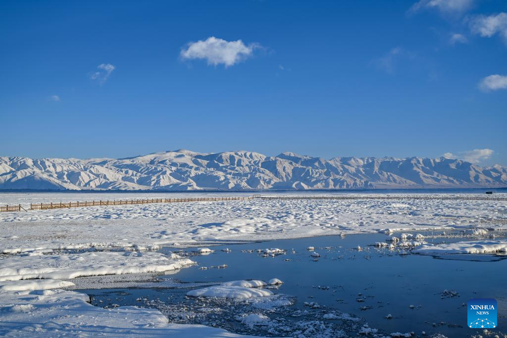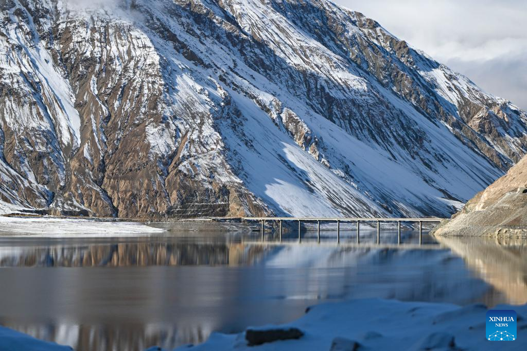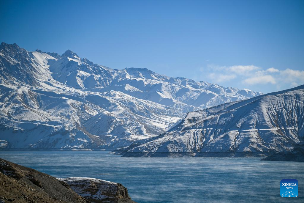 This photo taken on Jan. 3, 2025 shows a lake and surrounding snow mountains in Taxkorgan Tajik Autonomous County, northwest China's Xinjiang Uygur Autonomous Region. (Xinhua/Chen Shuo)