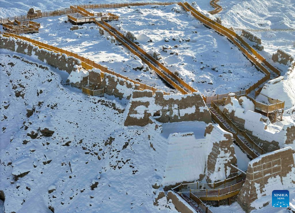 An aerial drone photo taken on Jan. 8, 2025 shows the Ruins of Stone City in Taxkorgan Tajik Autonomous County, northwest China's Xinjiang Uygur Autonomous Region. (Xinhua/Hu Huhu)
