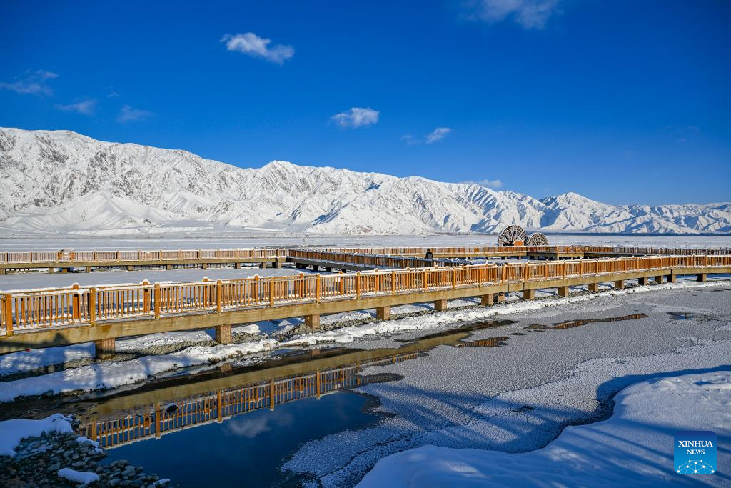 This photo taken on Jan. 8, 2025 shows a wetland park in Taxkorgan Tajik Autonomous County, northwest China's Xinjiang Uygur Autonomous Region. (Xinhua/Chen Shuo)