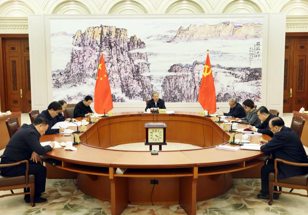 Zhao Leji, a member of the Standing Committee of the Political Bureau of the CPC Central Committee, chairman of the National People's Congress (NPC) Standing Committee and secretary of its leading Party members group, presided over and addressed the meeting convened by the leading Party members group of the NPC Standing Committee.