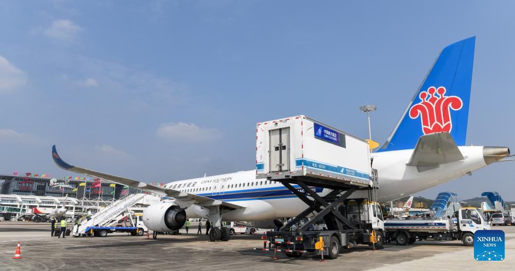 A C919 jetliner lands at Sanya Phoenix International Airport in Sanya, south China's Hainan Province, Jan. 10, 2025. A C919 jetliner carrying 112 passengers from Guangzhou, capital of south China's Guangdong Province, landed at Sanya Phoenix International Airport in Hainan Province on Friday, marking the success of this aircraft type's maiden commercial flight in Sanya. (Xinhua/Yang Guanyu)
