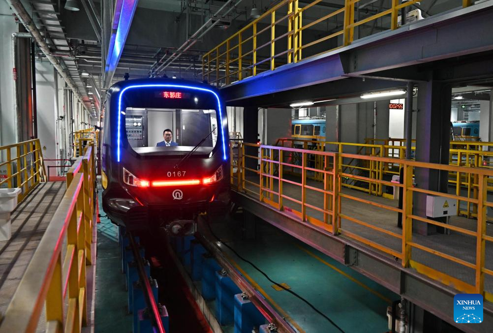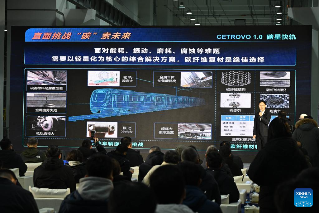 With a carbon fiber composite body and frame, it is lighter and more energy-efficient than the traditional subway train. (Xinhua/Li Ziheng)