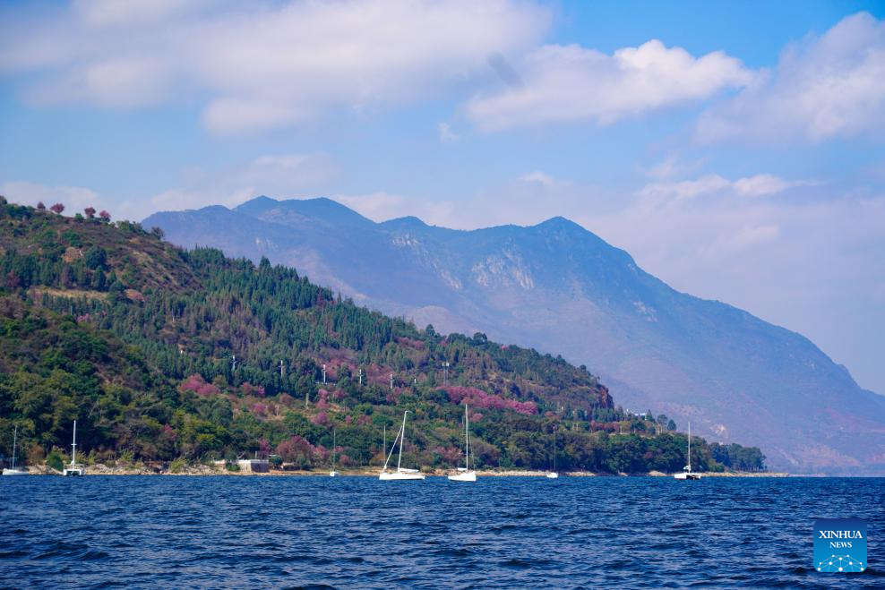 This photo shows the scenery of Fuxian Lake in Yuxi City, southwest China's Yunnan Province, Jan. 12, 2025. (Xinhua/Wang Jingyi)