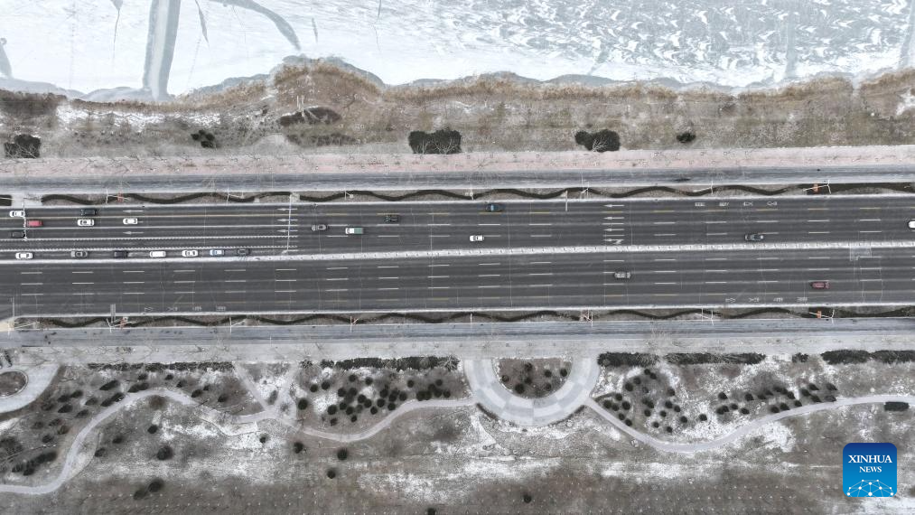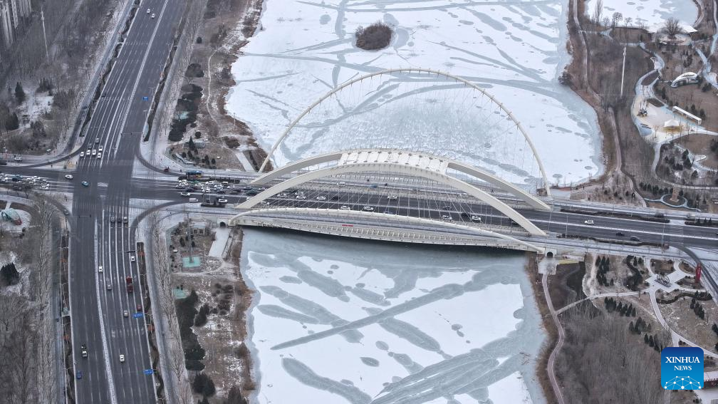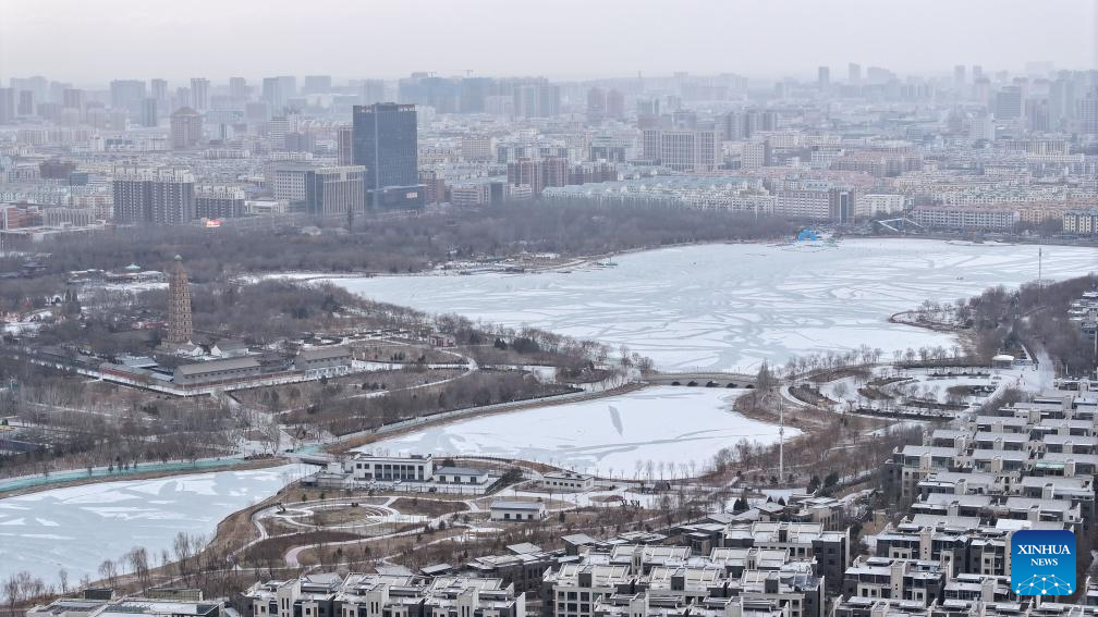 This aerial drone photo taken on Jan. 11, 2025 shows a snow view in Yinchuan, northwest China's Ningxia Hui Autonomous Region. (Xinhua/Wang Peng)