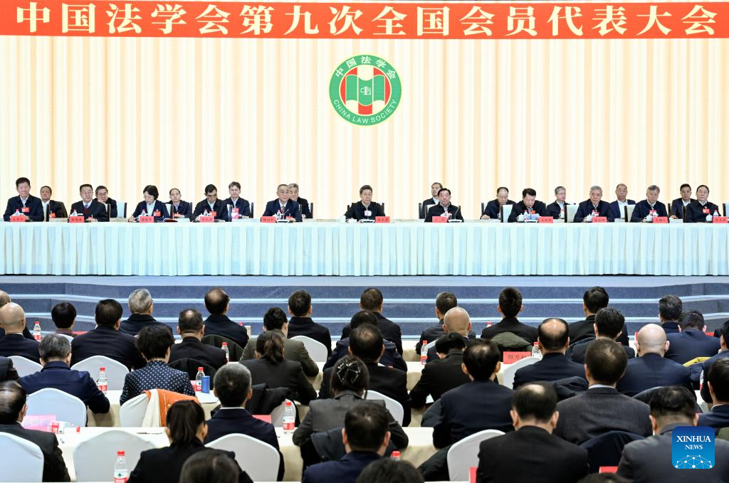 Chen Wenqing, a member of the Political Bureau of the Communist Party of China (CPC) Central Committee and head of the Commission for Political and Legal Affairs of the CPC Central Committee, is elected director of the China Law Society (CLS) at the closing meeting of its ninth congress in Beijing, capital of China, Jan. 11, 2025. (Xinhua/Zhang Ling)