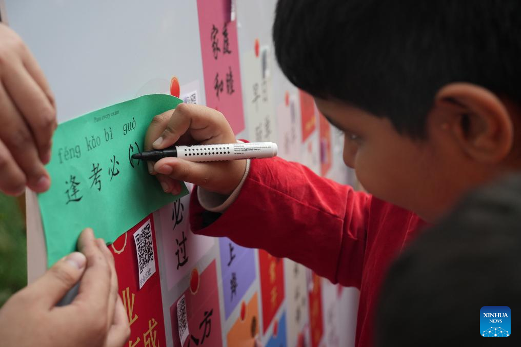 A child participates in a game during a temple fair welcoming the Chinese New Year in Dhaka, Bangladesh, Jan. 10, 2025. As the Chinese zodiac Year of the Snake is approaching, the Ministry of Culture and Tourism of China and the Chinese Embassy in Bangladesh jointly hosted the "Happy Chinese New Year Festival" Temple Fair here on Friday. Thousands of people from all walks of life in Bangladesh gathered together to welcome the upcoming Spring Festival and experience Chinese culture. (Xinhua/Sun Nan)