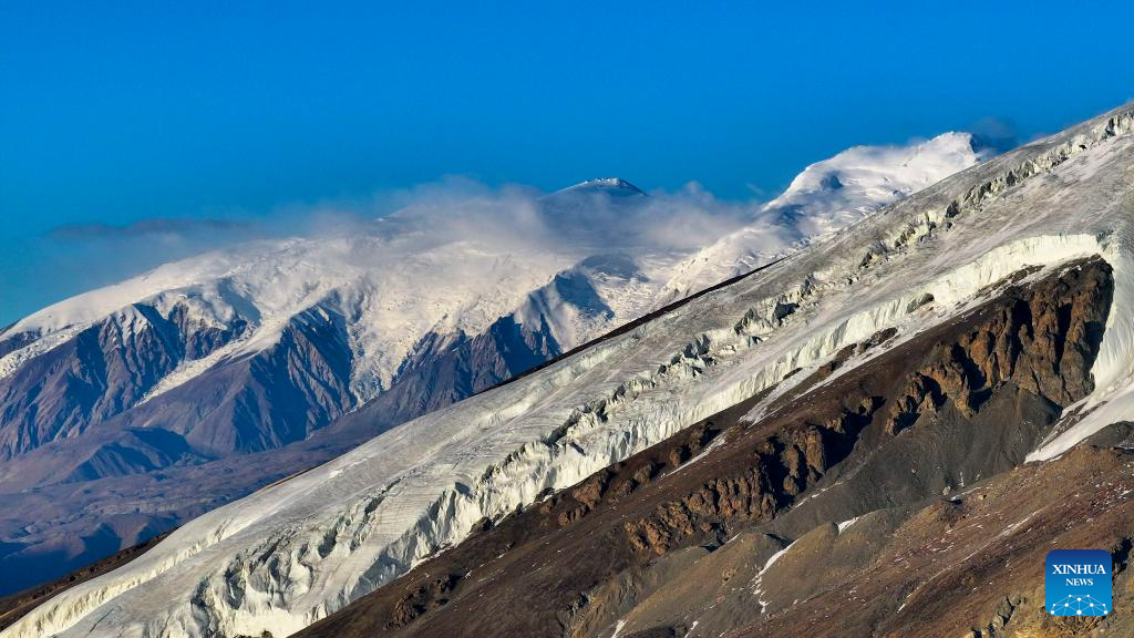A drone photo taken on Jan. 12, 2025 shows Mount Muztagata and glaciers in northwest China's Xinjiang Uygur Autonomous Region. (Xinhua/Chen Shuo)