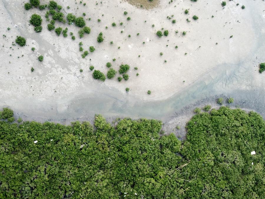Aerial photo taken on Oct. 26, 2018 shows a mangrove conservation area in the Beihai Golden Bay in Beihai City, south China's Guangxi Zhuang Autonomous Region. (Xinhua/Wei Hai)