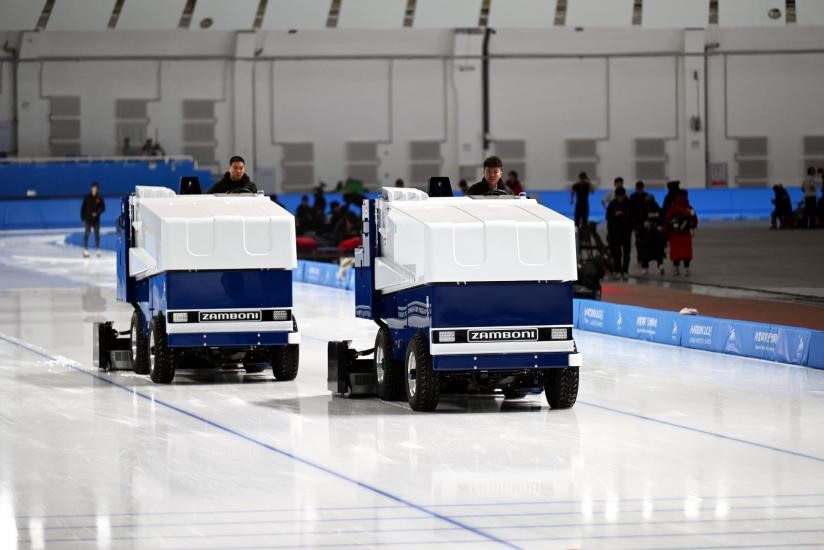 Ice resurfacers work at the Heilongjiang Ice Training Center, in which 14 gold medals will be awarded during the 9th Asian Winter Games. (Photo from the official website of the 9th Asian Winter Games)