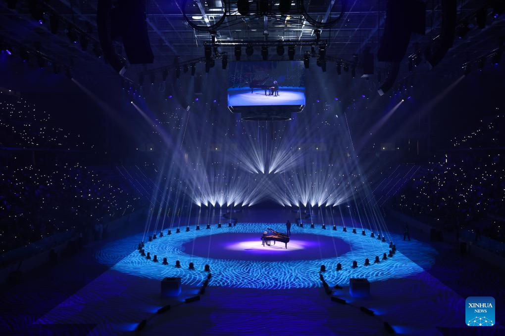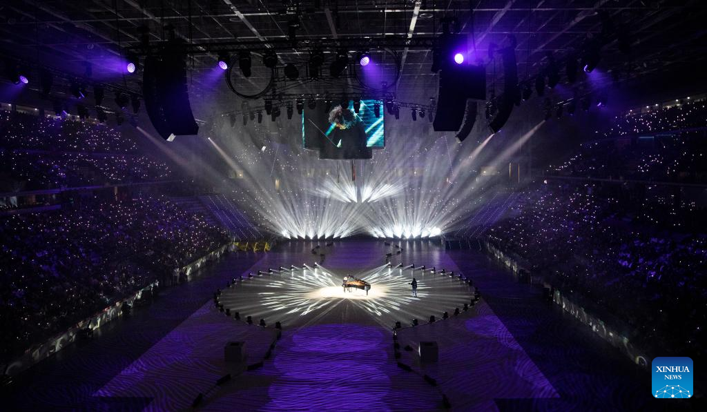Italian musician Giovanni Allevi performs during the opening ceremony of the 2025 FISU Winter World University Games in Turin, Italy, Jan. 13, 2025. (Xinhua/Zhang Fan)