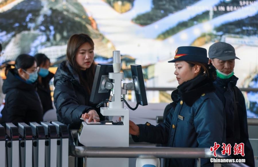 Passengers pass through the self check-in gates at Beijing North Railway Station, Jan. 13, 2025. (China News Service/Jia Tianyong)