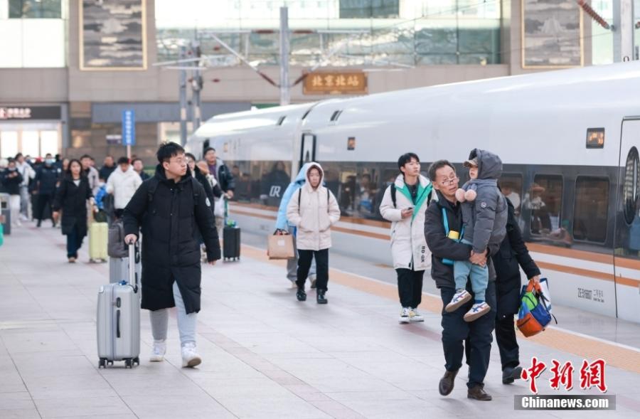 Passengers walk on the platform at Beijing North Railway Station, Jan. 13, 2025. (China News Service/Jia Tianyong)