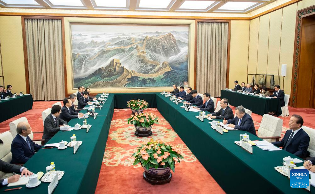 BEIJING, Jan. 14 (Xinhua) -- China's top political advisor Wang Huning on Tuesday met with a delegation of Japan's ruling coalition, led by Secretary General Hiroshi Moriyama of the Liberal Democratic Party and Secretary General Makoto Nishida of the Komeito Party.