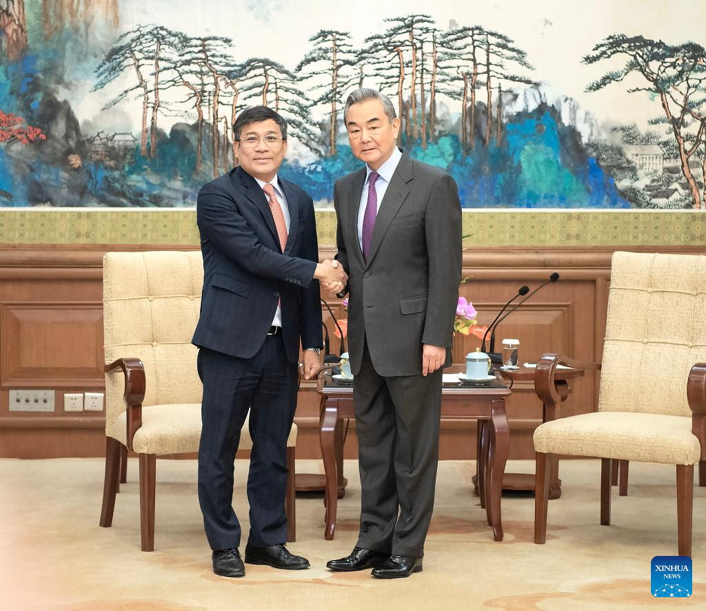 Chinese Foreign Minister Wang Yi, also a member of the Political Bureau of the Communist Party of China Central Committee, meets with Vietnamese Permanent Deputy Minister of Foreign Affairs Nguyen Minh Vu, who is in Beijing for the first strategic consultation between the foreign ministries of China and Vietnam, in Beijing, capital of China, Jan. 14, 2025. (Xinhua/Li Tao)