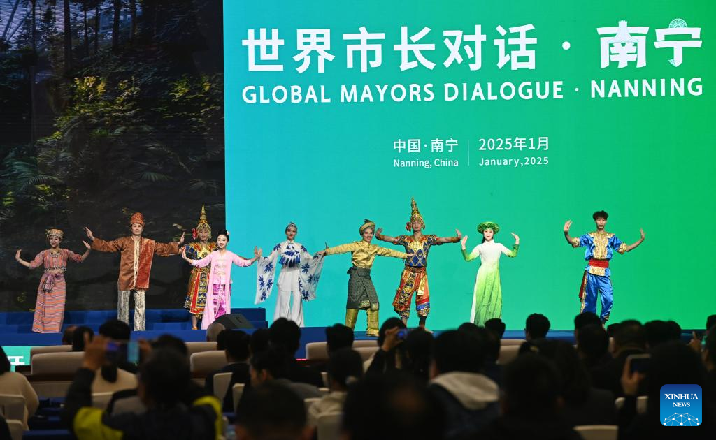 This photo taken on Jan. 16, 2025 shows a performance during the intervals of the "Global Mayors Dialogue -- Nanning" event in Nanning, south China's Guangxi Zhuang Autonomous Region. (Xinhua/Lu Boan)