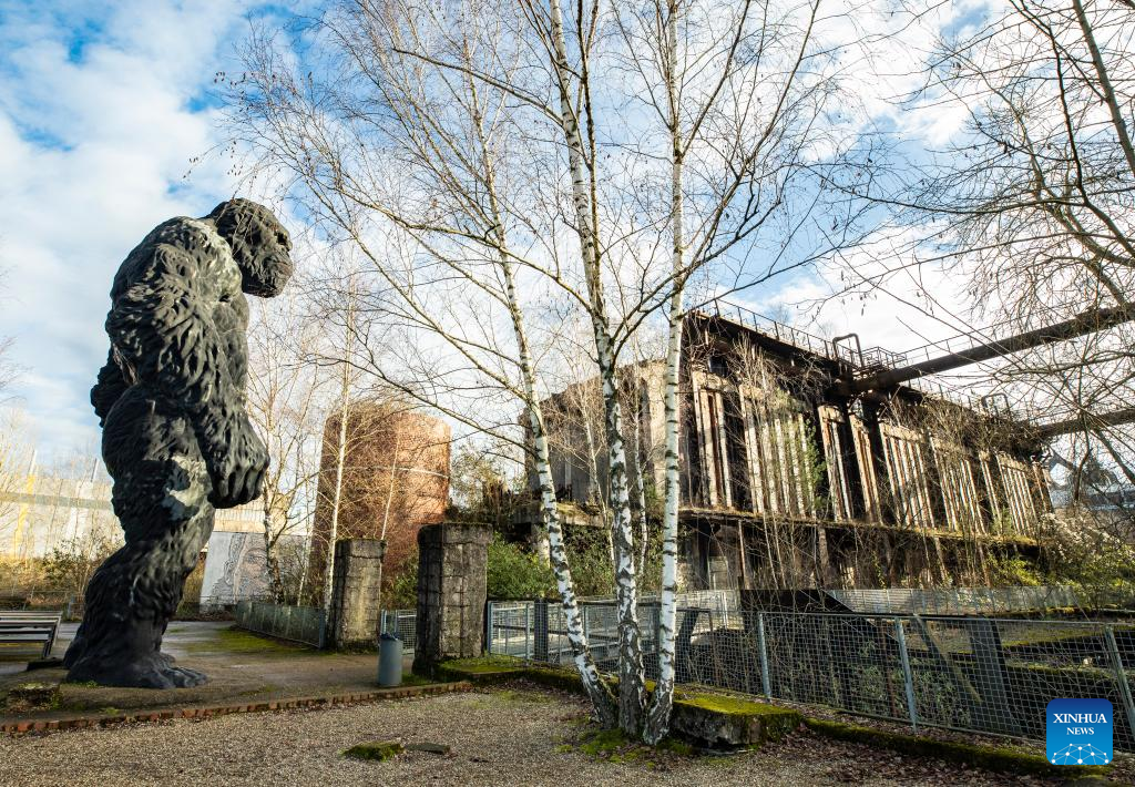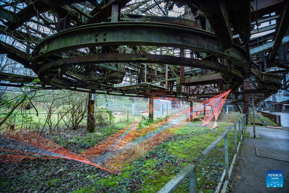 This photo taken on Dec. 18, 2024 shows an art installation at the Voelklingen Ironworks in Saarland, Germany. (Xinhua/Zhang Fan)