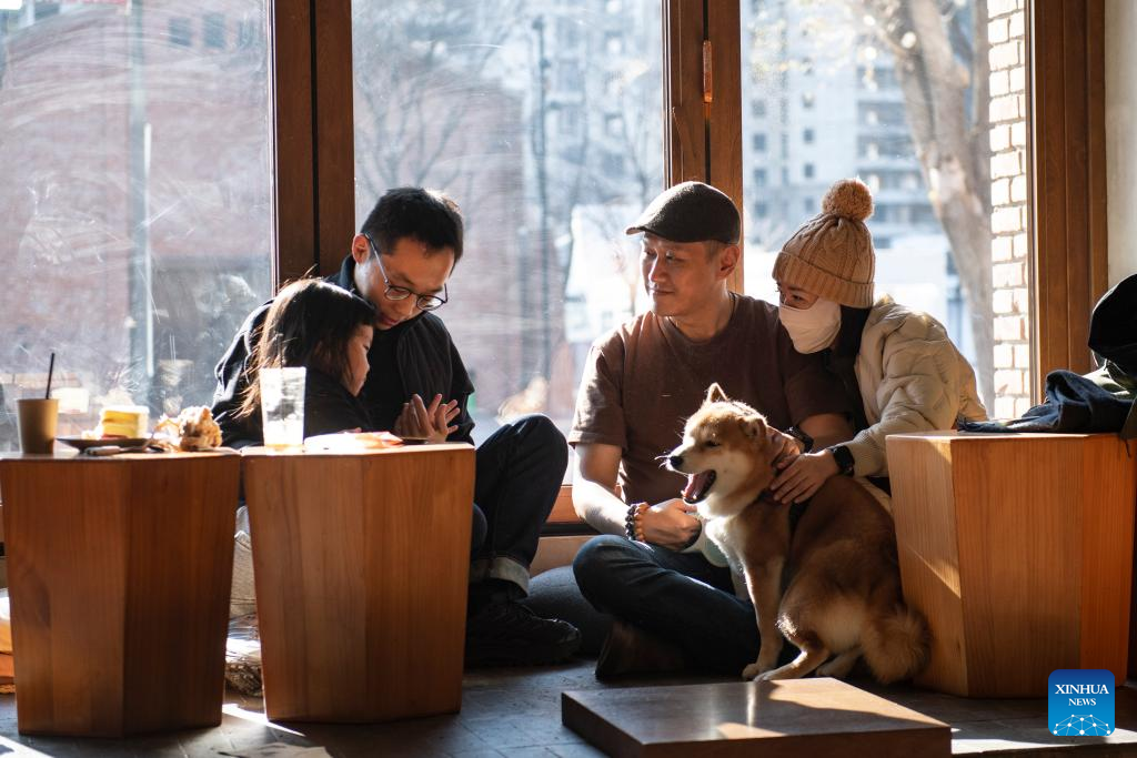 Visitors spend their leisure time at a coffee shop in the Hongmei cultural and creative industry park, which is transformed from an old factory, in Tiexi District of Shenyang, capital of northeast China's Liaoning Province, Nov. 30, 2024. (Xinhua/Sun Ruibo)