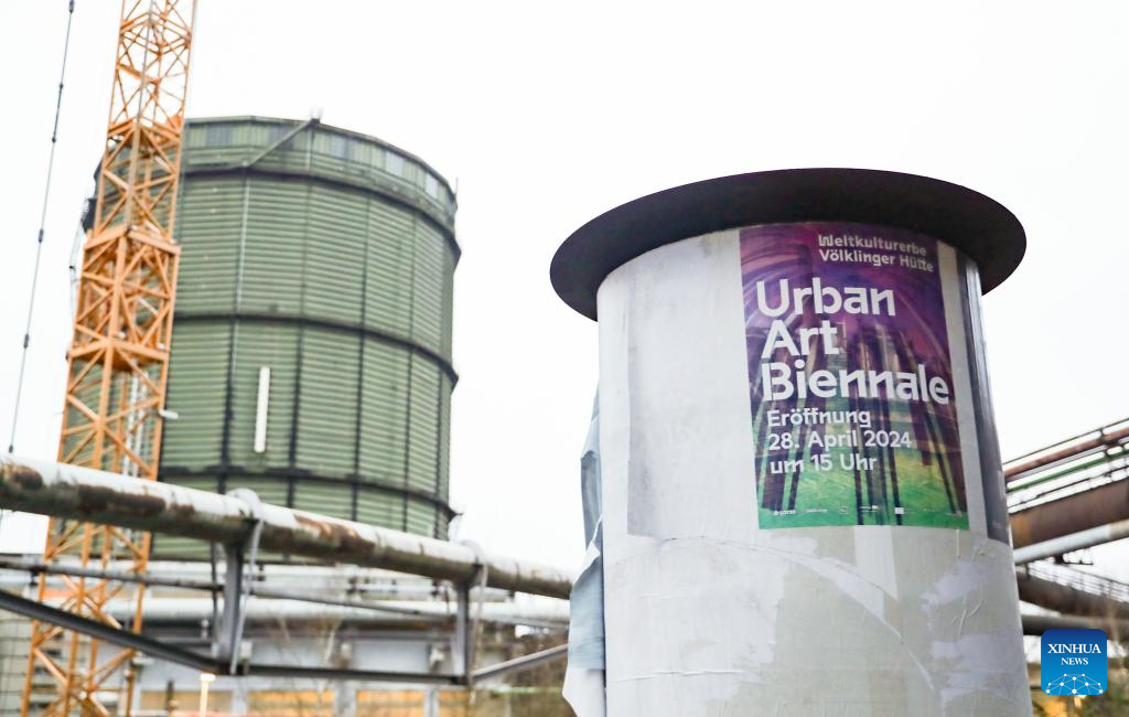 This photo taken on Dec. 17, 2024 shows an Urban Art Biennale poster at the Voelklingen Ironworks in Saarland, Germany. (Xinhua/Zhang Fan)